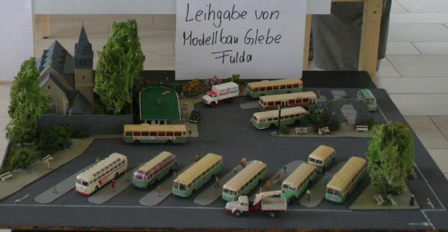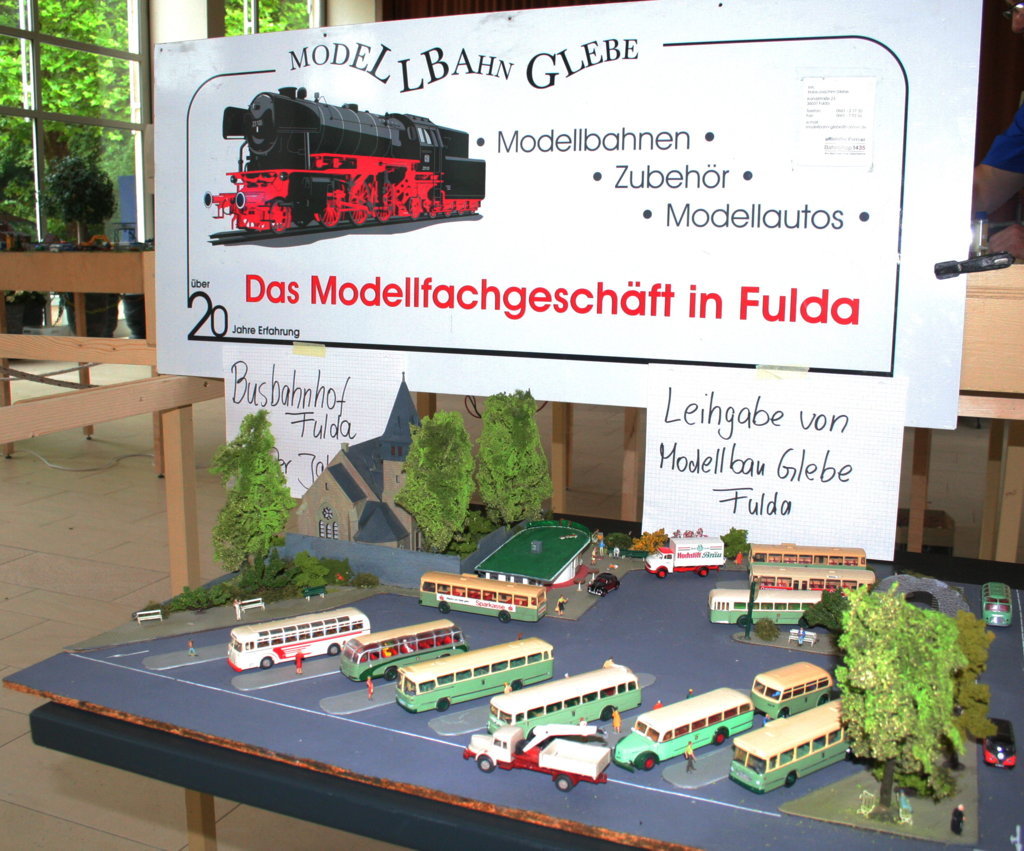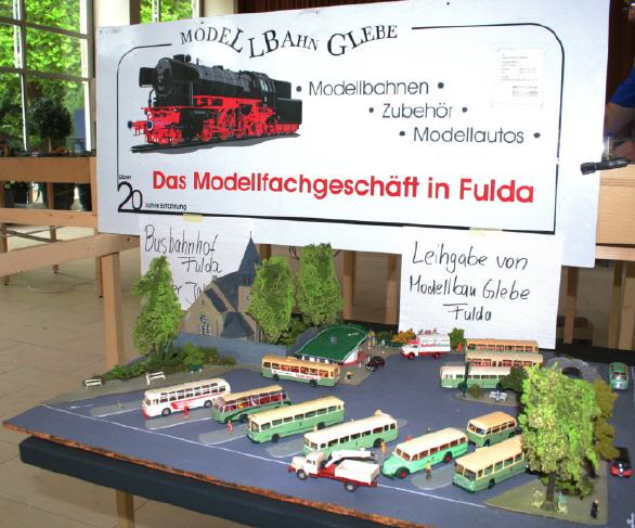 Herr Glebe (Inhaber Modellbahn-Glebe, 36037 Fulda, Kanalstrasse) stellte ein selbstgebautes Diorama "Busbahnhof Fulda 70er Jahre" zur Verfügung.