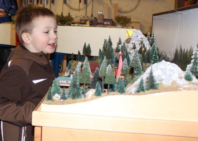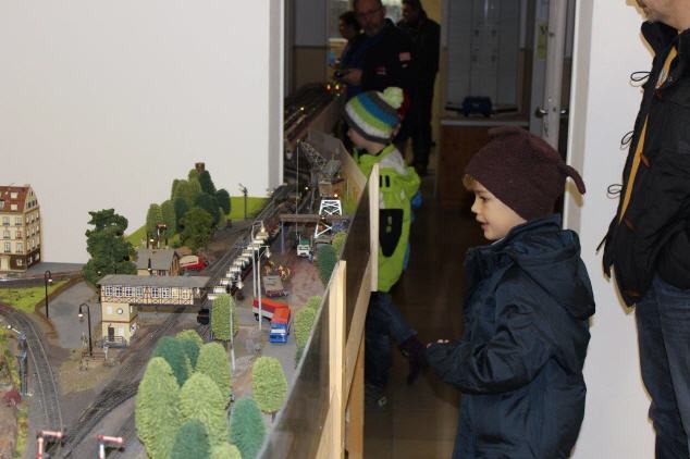 Große und "Kleine" modellbahnbegeisterte Zuschauer