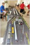 Erneut Zuschauermagnet waren die Module von Jürgen und Bernd mit dem "Faller-Car-System": Fahrende Miniaturautos und Miniatur-LKWs kreuzen den Bahnverkehr - immer wieder ein faszinierender Anblick.