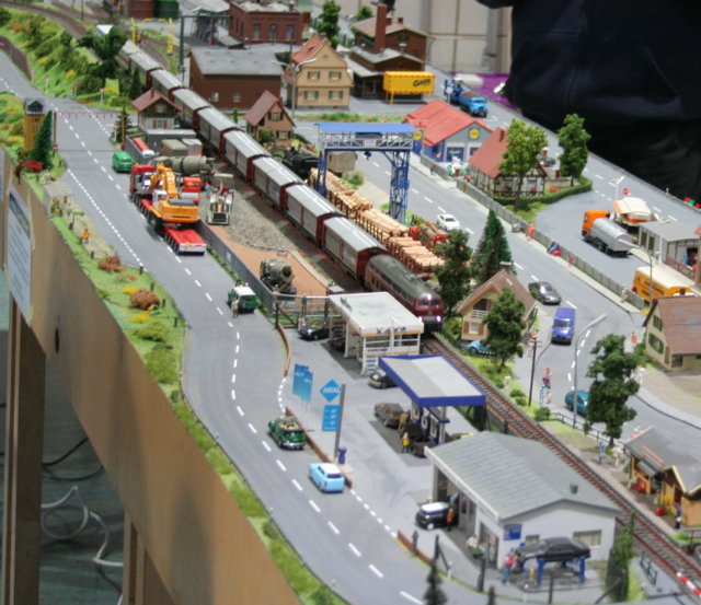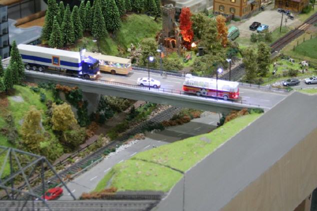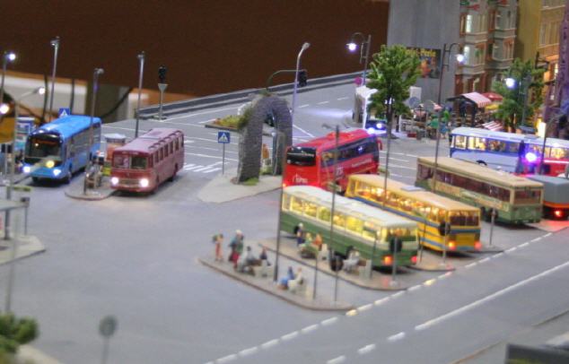 Neu und erstmals im Einsatz ein Stadtmodul von Thomas, auf dem fahrende Miniatur-Stadtbusse ihre Runden drehten. Das Ursprungsmodul war ein Diorama von Modellbahnhändler Joachim Glebe aus Fulda, das auf Modulgröße "aufgepimpt" wurde und den Busbahnhof Fulda im Teitraum der 70er Jahre darstellt.