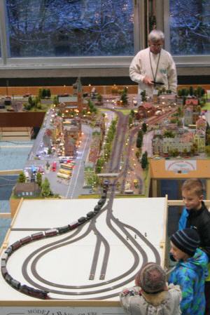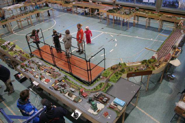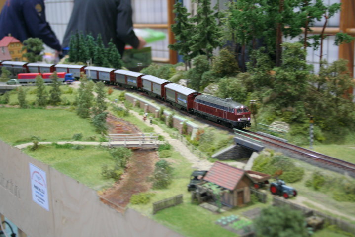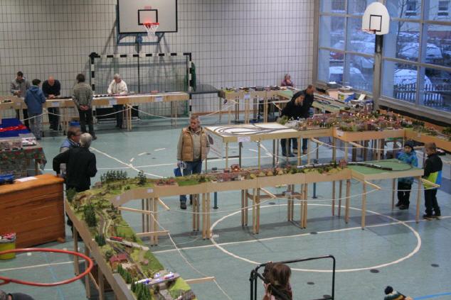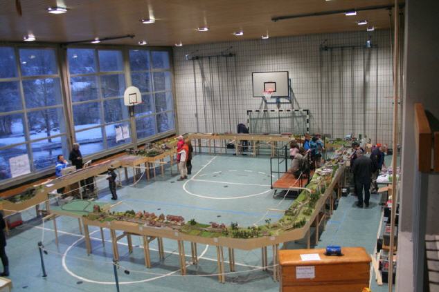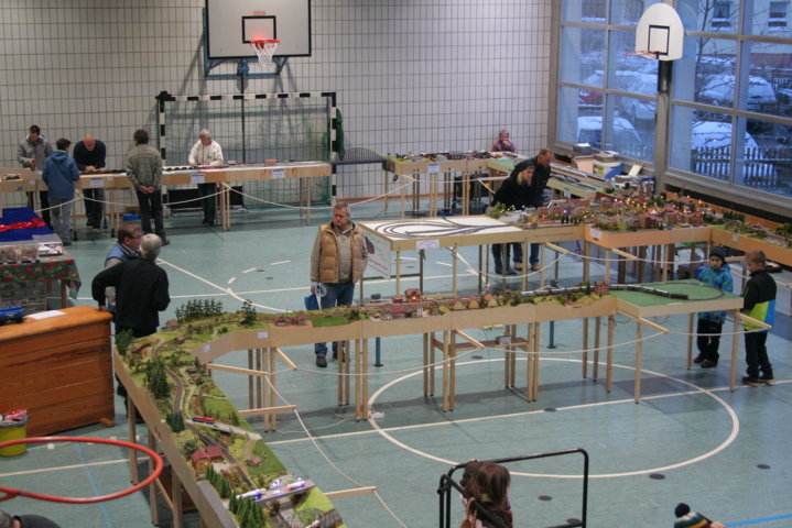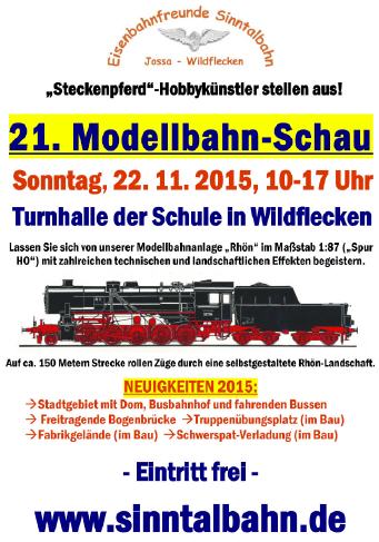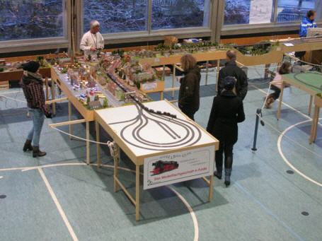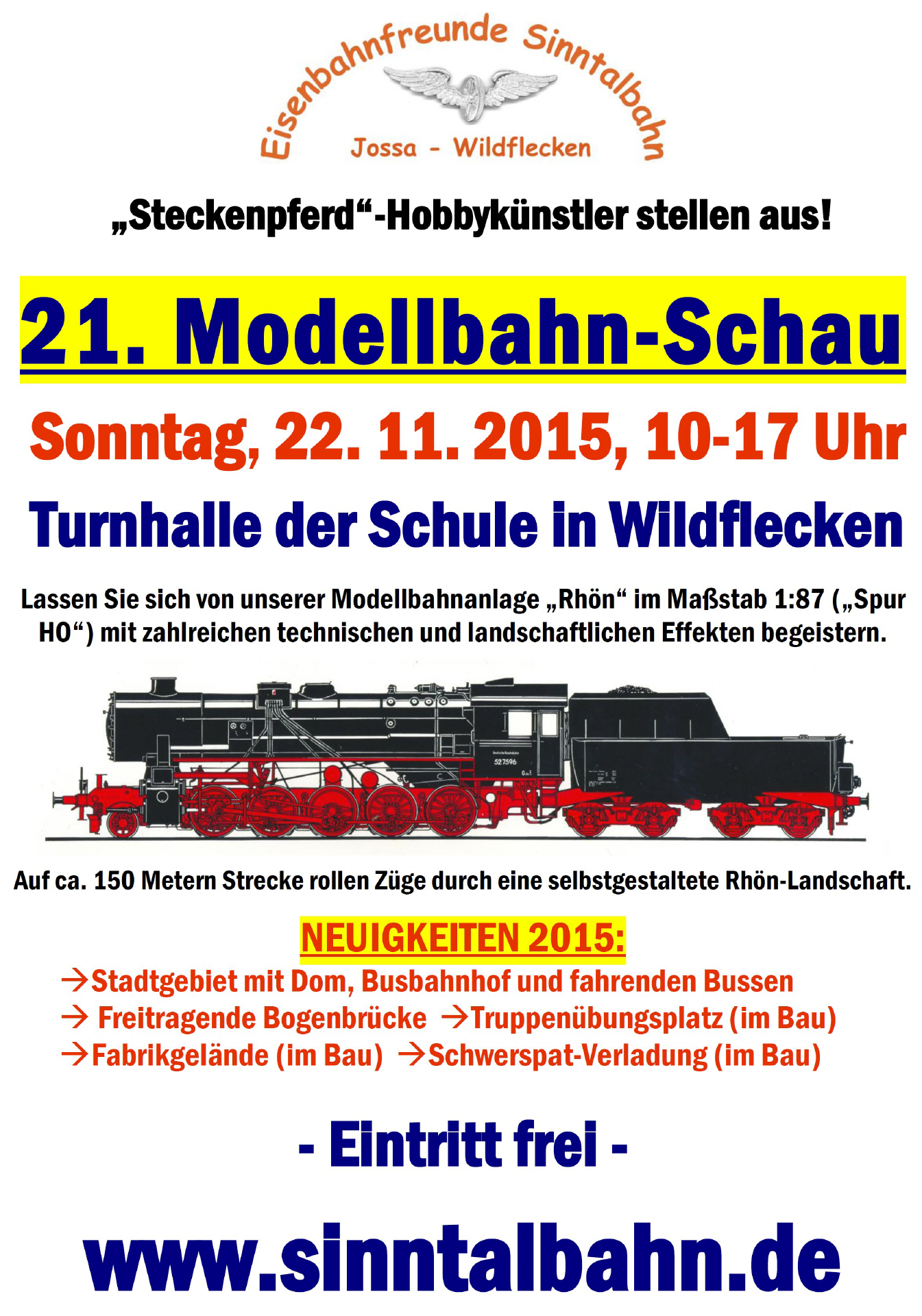 im Rahmen der Veranstaltung "Steckenpferd-Hobbykünstler stellen aus" fand am 22.11.2015 in Wildflecken statt. Erstmals hatten wir insgesamt 80 Module im Einsatz und damit unsere bisher größte Modellbahnschau präsentieren können. Highlight war wiederum das "Carsystem" von Jürgen Mohnen mit den fahrenden Modellautos, er wurde unterstützt durch weitere Vereinsmitglieder, die auf dem Modulabschnitt Rangierfahrten in der dargestellten Holzverladung durchführten.