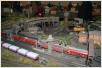 ...gestaltete Modellbahn aus 30 Modulen mit einer eingleisigen Strecke und 2 Bahnhöfen gestattete einen regen Zugbetrieb mit Dampf- und Diesellok-bespannten Zügen aus der Ära der 70er Jahre.