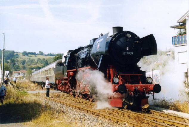 In den Folgejahren (mit Ausnahme von 2001) wurden die "Rad und Bahn"-Züge mit der Würzburger 52 7409 bespannt. Am 19.09.1999 steht sie mit ihrem Sonderzug abfahrbereit in Altengronau Süd.
