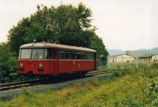 Zwischen Bad Brückenau und Wildflecken verkehrte ab dem Sommerfahrplan 1982 nur noch ein Alibizugpaar. Aus Platzgründen musste der Schienenbus (798 729-0 und 998 859-3) am 04.08.1987 seine einstündige Pause im Militärverladebahnhof von Wildflecken verbringen.