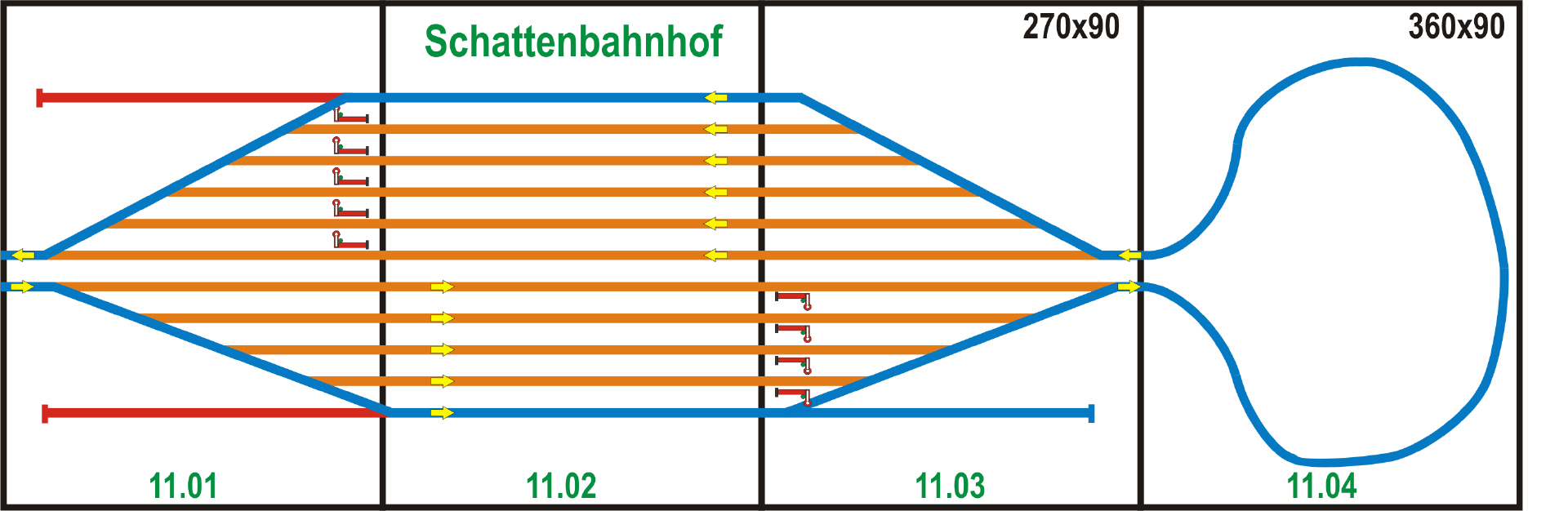 Zur 10. Modulschau im Juli 2011 wurde der neue Schattenbahnhof mit verbessertem Gleisplan in Betrieb genommen.
