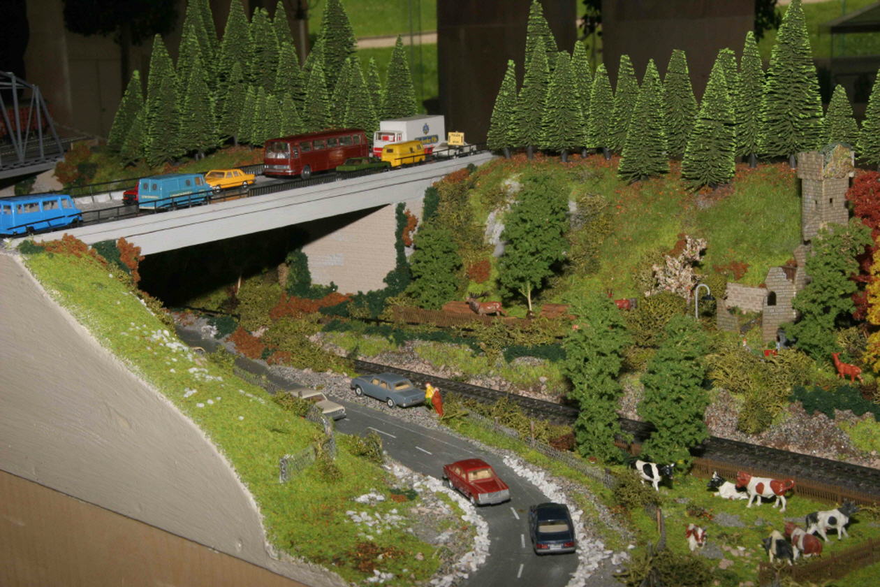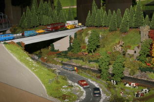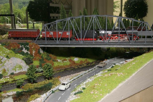 Ansicht Modul 16.2 von rechts, Hauptstrecke und schmale Kreisstrasse werden von Bundesstrasse überquert (Cursor zur Ausschnittvergößerung über das Bild bewegen) |